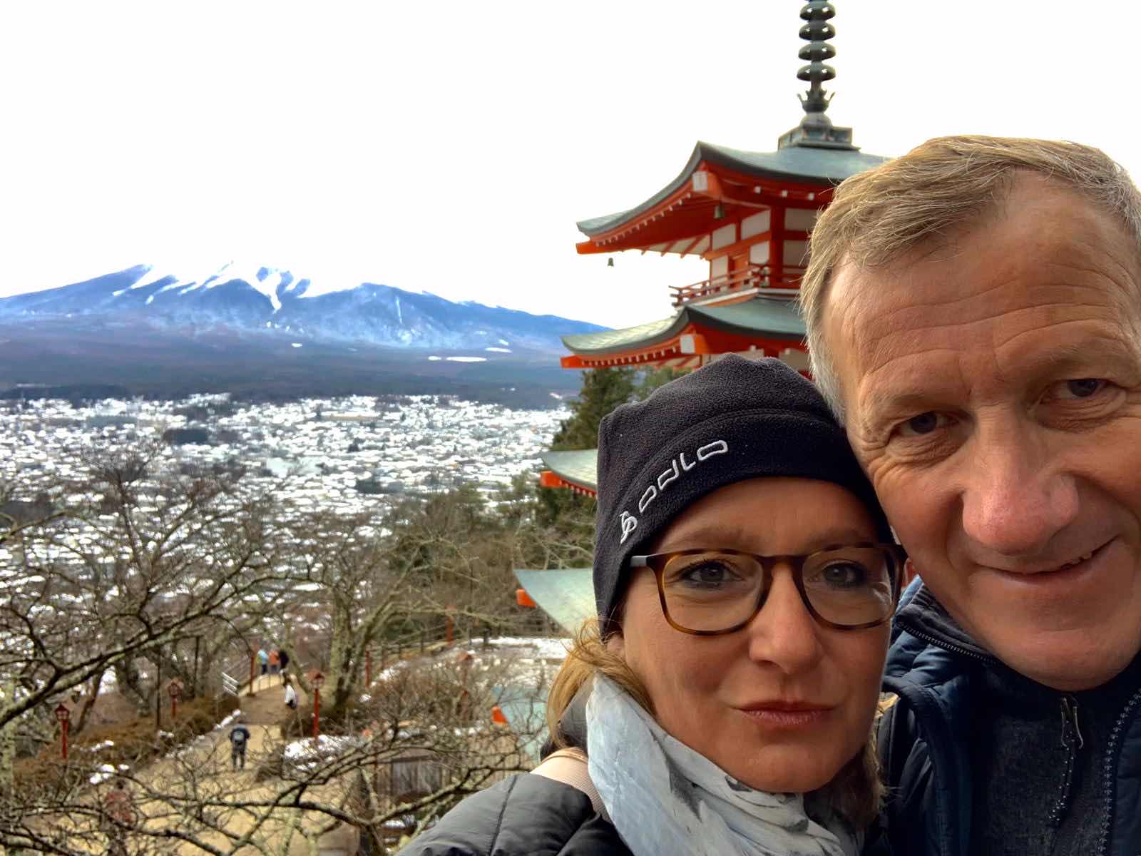 Heute sind wir dann ganz touristisch unterwegs und machen zuerst einen Ausflug zur Chureito Pagode. Für 400 Stufen aufwärts wird uns ein grandioser Ausblick versprochen. So weit so klar. Leider ist es heute richtig wolkig und kalt und die Kirschblüte ist im Dezember - wie auch nicht - gänzlich abwesend. Nun, man kann nicht alles haben. Wir erklimmen die 400 Stufen natürlich trotzdem, mit mehr oder weniger viel Anstrengung und lassen die Bilder oben auf uns wirken. Schon schön ... nur ziemlich unromantisch und trotz der Jahreszeit auch total überlaufen.
