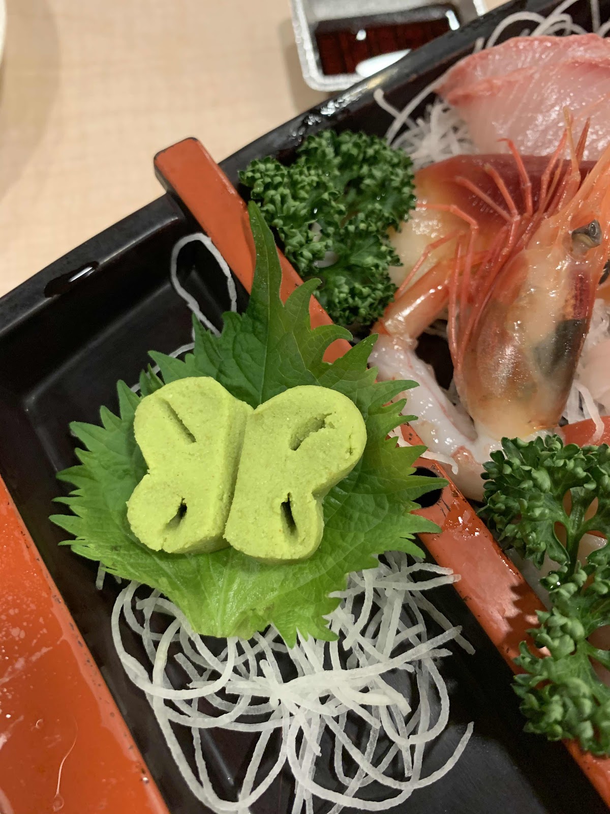 Das Abendessen war gestern im übrigen mit sehr viel Liebe zubereitet, wenn ich es auch entsetzlich finde, wenn mich der Fisch so anschaut. Da vergeht mir auch die Lust auf Sushi. Leider. Hans muss also das Meiste von dem Schiffchen alleine essen. Aber hübsch ist es ... und der Stolz, mit dem der Kellner es an unseren Tisch gebracht hat - einfach rührend und absolut nett.