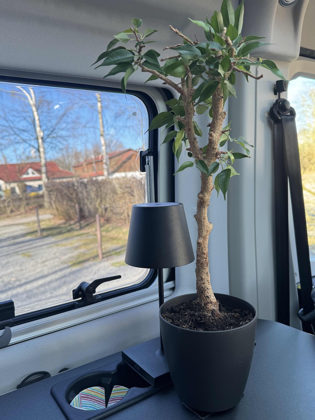 Ach so: auf dieser Reise haben wir jetzt auch grüne Reisenegleitung, wir haben nämlich einen Baum an Bord. Der Bonsai ist ein Geschenk von Hans Vater und begleitet ihn schon seit 35 Jahren... er konnte einfach nicht allein zuhause bleiben. Er kommt also mit auf die große Tour.
